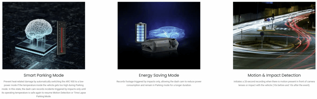 • Parking Surveillance Mode (Smart, Motion & Impact Detection and Energy Saving Mode)*